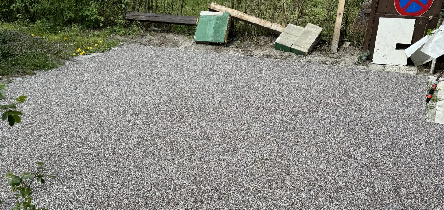 Bei diesem Projekt wurde ein hochwertiger Steinteppichboden fachgerecht ausgeführt. Nach der gründlichen Untergrundvorbereitung und Grundierung erfolgte der Einbau eines Steinteppichs aus Natursteinen, gebunden mit einem transparenten Epoxidharz.
